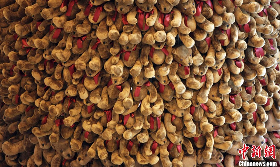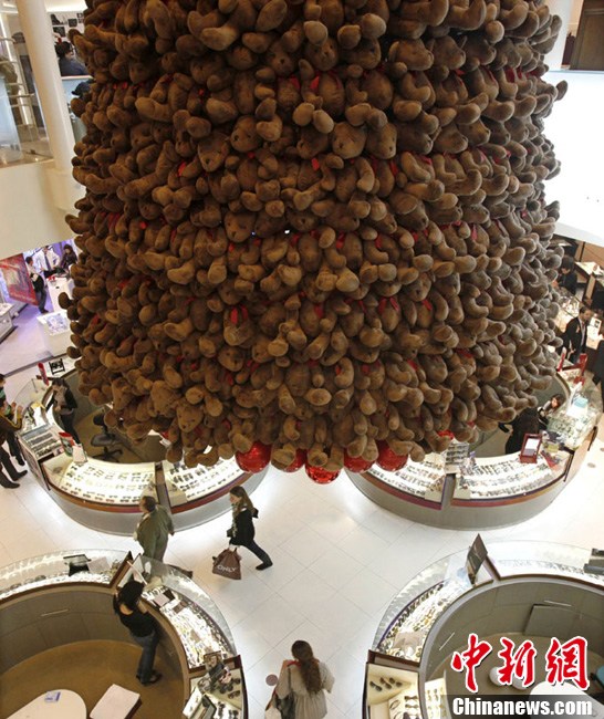 12月20日,在黎巴嫩首都貝魯特一家商場,上千只泰迪熊組成的圣誕樹狀裝飾物懸掛在天花板上。在圣誕即將到來之際,黎巴嫩首都貝魯特舉行了一項名為“小小的熊,大大的心”的慈善活動,出售2000只泰迪熊的收益將會捐給黎巴嫩的自閉癥患者。