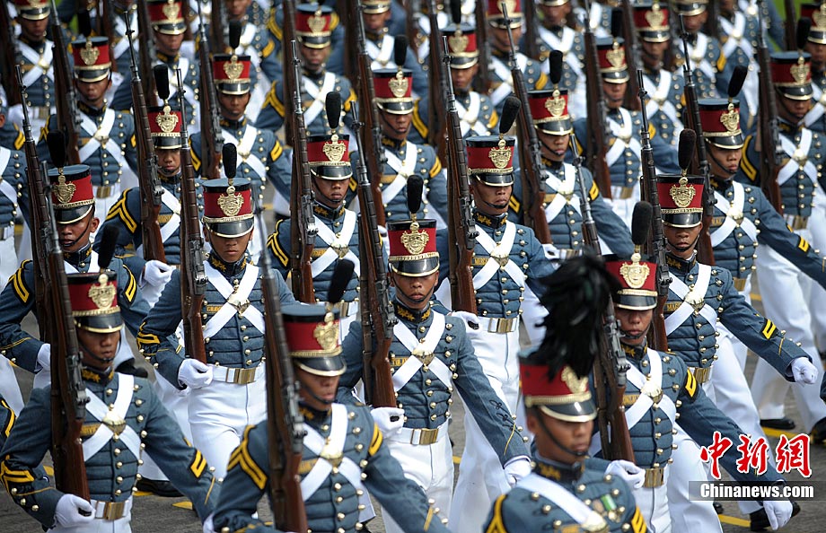 當(dāng)?shù)貢r(shí)間12月21日,菲律賓建軍75周年閱兵式在菲律賓奎松城舉行。菲律賓總統(tǒng)阿基諾三世視察了閱兵式。