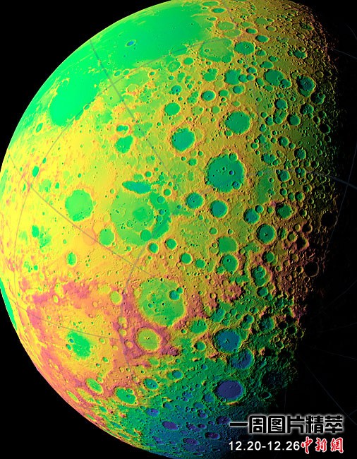近日,美國(guó)航天局對(duì)外公布了月球勘測(cè)軌道飛行器攜帶的月球軌道飛行器激光測(cè)高儀(LOLA)對(duì)該地點(diǎn)進(jìn)行的高度測(cè)量。科學(xué)家稱,月球勘測(cè)軌道飛行器使研究者能制造出最精確且最完整的月球地形圖。紅色代表月球最高點(diǎn),藍(lán)色代表最低點(diǎn)。