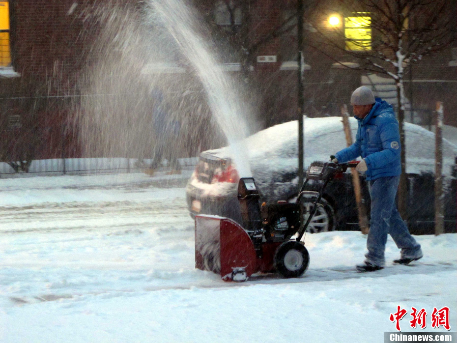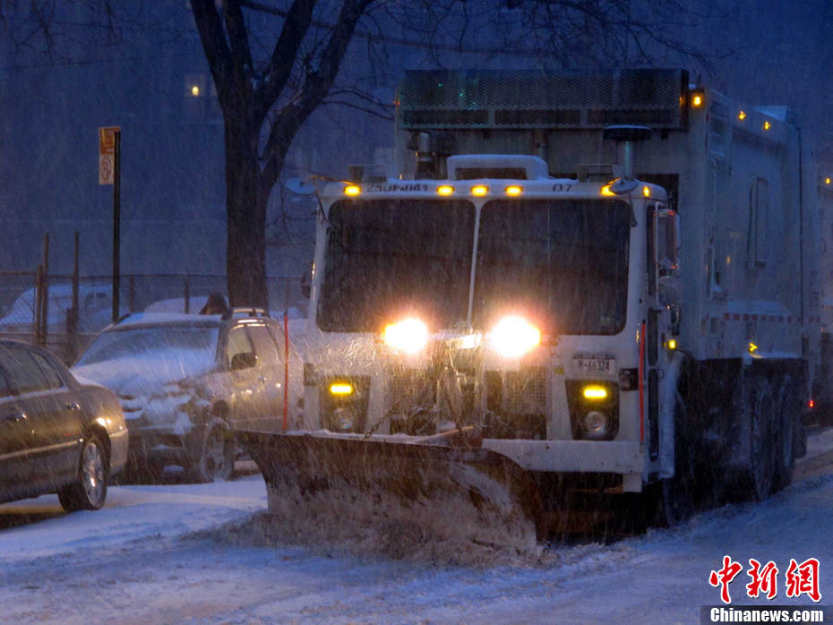 一場(chǎng)暴風(fēng)雪26日撲向美國東北部的新澤西州、紐約市等地,同時(shí)伴有時(shí)速達(dá)到四五十哩的勁風(fēng),預(yù)計(jì)26日及27日為這些地區(qū)帶來十英寸左右的積雪。公路行車危險(xiǎn)大增,卷起的漫天白雪可能造成航班嚴(yán)重誤點(diǎn),導(dǎo)致華盛頓、紐約和波士頓機(jī)場(chǎng)近日取消航班。圖為紐約法拉盛街頭掃雪車正在清理公路積雪。中新社記者 孫宇挺 攝