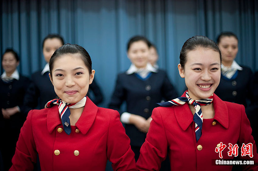 再過兩周,北京地區(qū)將較全國提前10天開始進入春運階段。為迎接春運,北京地區(qū)加開了至重慶、成都等地的動車組。24日,新一批動車組乘務員在石家莊接受完封閉培訓,將在春運前走上崗位?崴瓶战愕膭榆嚱M女乘務員,一顰一笑皆有規(guī)矩,給旅客帶來良好感覺的背后,是艱苦的訓練。張沫 攝 圖片來源:CFP視覺中國