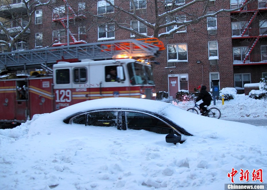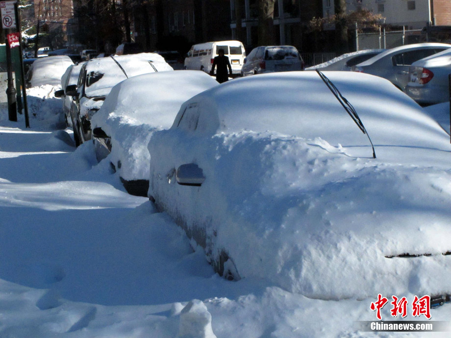 當(dāng)?shù)貢r(shí)間12月27日,紐約整座城市被大雪深埋,政府雪后清理行動(dòng)遲緩,導(dǎo)致公共交通設(shè)施幾乎全線受阻,引起民眾不滿。紐約市長(zhǎng)布隆伯格在當(dāng)日舉行的發(fā)布會(huì)上承認(rèn),年終將至,紐約市政府經(jīng)費(fèi)捉襟見肘,因此“沒有額外的錢支付工人加班費(fèi)”。這導(dǎo)致周末紐約暴雪過后街道清掃速度緩慢,交通大癱瘓延至星期一。圖為一輛停在路邊的汽車在大雪過后整整一天,仍然被深埋雪中。中新社發(fā) 魏晞 攝