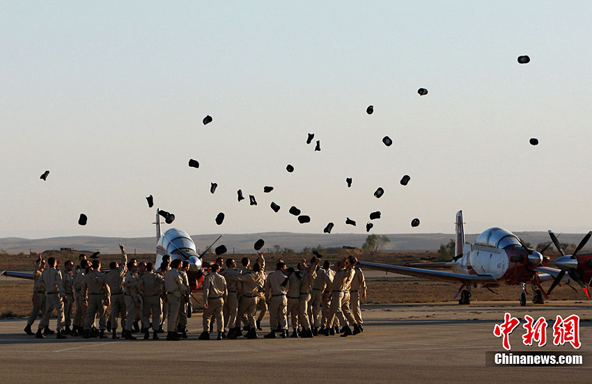 當(dāng)?shù)貢r(shí)間12月28日,在以色列南部城市貝爾謝巴附近的哈特澤里姆空軍基地,以色列空軍飛行學(xué)院的畢業(yè)生進(jìn)行飛行表演。當(dāng)日,數(shù)十名以色列空軍飛行學(xué)院的學(xué)員在這里舉行畢業(yè)典禮,并進(jìn)行飛行表演。