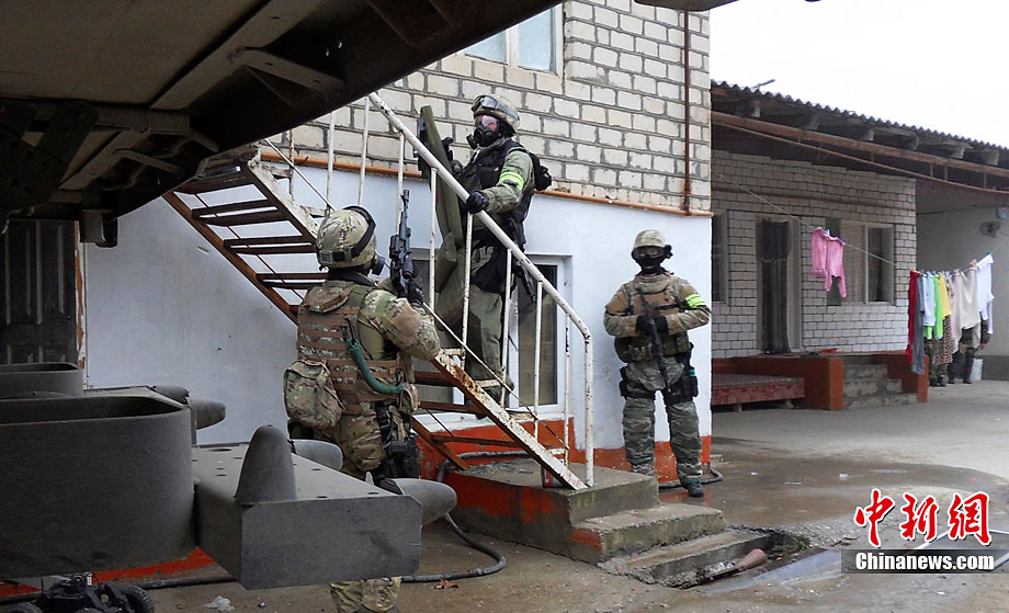 12月29日,俄羅斯達吉斯坦共和國首都馬哈奇卡拉,俄羅斯聯(lián)邦安全局反恐人員參加特別行動,打死一名武裝分子。