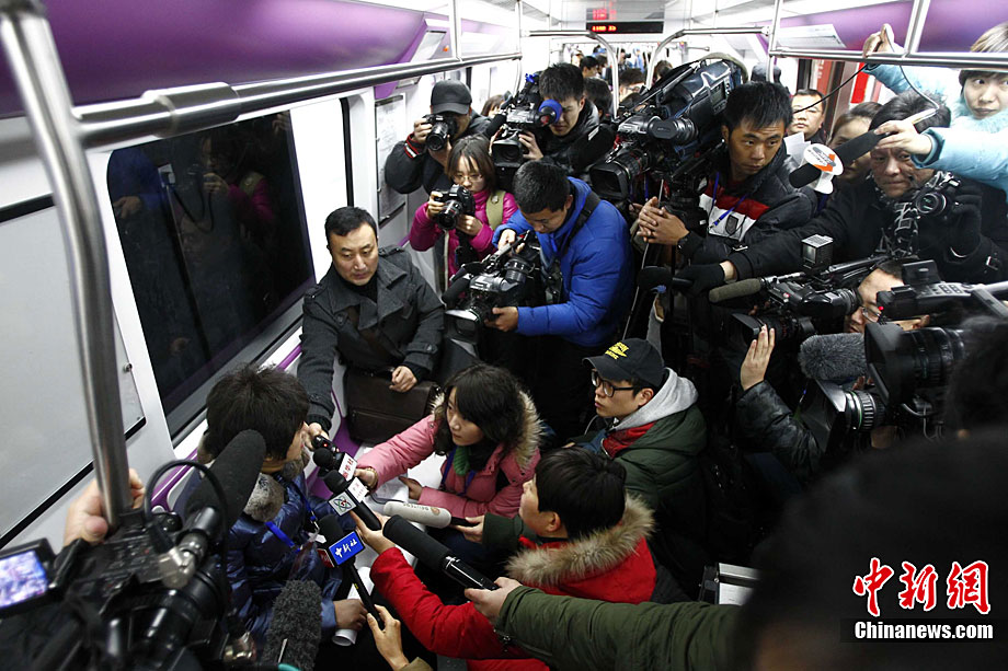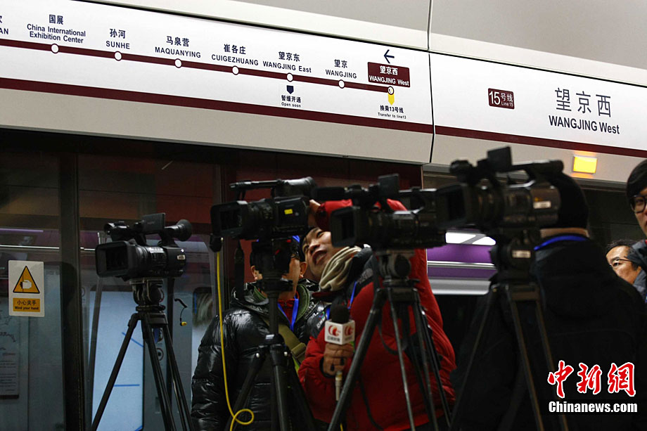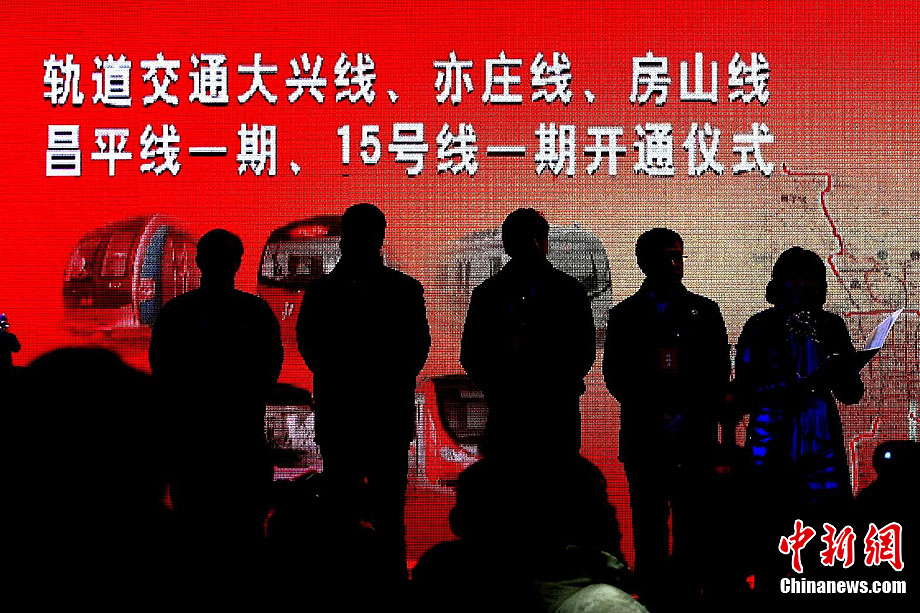 12月30日,北京5條地鐵新線開門迎接乘客。這5條地鐵線路包括房山線、昌平線一期、15號(hào)線一期、亦莊線和大興線,總長(zhǎng)度達(dá)108公里。上述地鐵線路全部開通后,北京市軌道交通運(yùn)營(yíng)里程將首次突破300公里。中新社記者 富田 攝