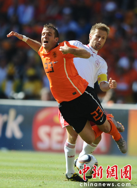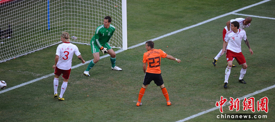 北京時(shí)間6月14日晚19點(diǎn)30分,南非世界杯E組第一輪正式在約翰內(nèi)斯堡的足球城體育場(chǎng)打響,由橙衣軍團(tuán)荷蘭隊(duì)對(duì)陣“北歐海盜”丹麥隊(duì)。下半場(chǎng)丹麥后衛(wèi)鮑爾森打進(jìn)本屆世界杯的第一粒烏龍球。84分鐘庫(kù)伊特門前撿漏得手,為荷蘭隊(duì)鎖定勝局,橙衣軍團(tuán)2-0戰(zhàn)勝丹麥。
