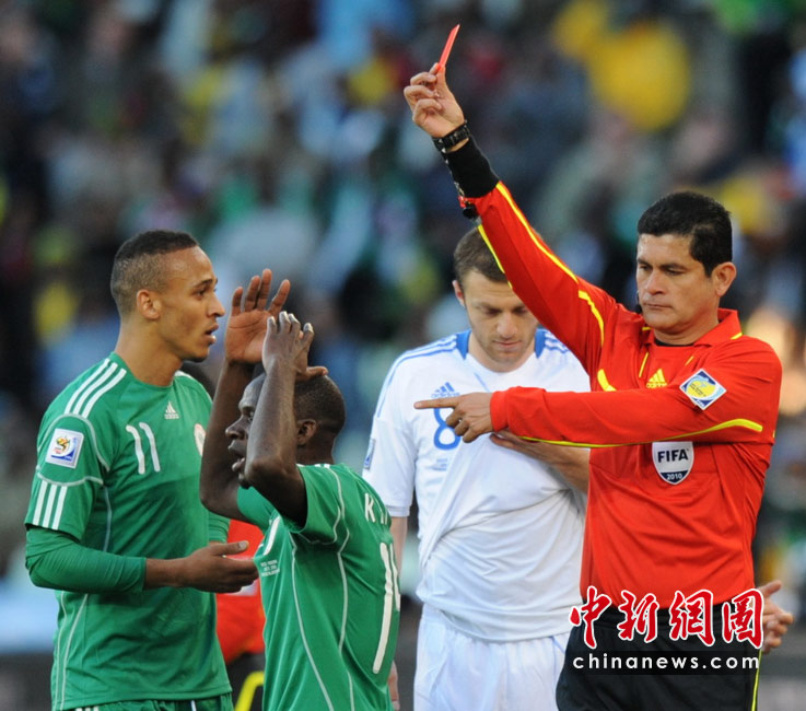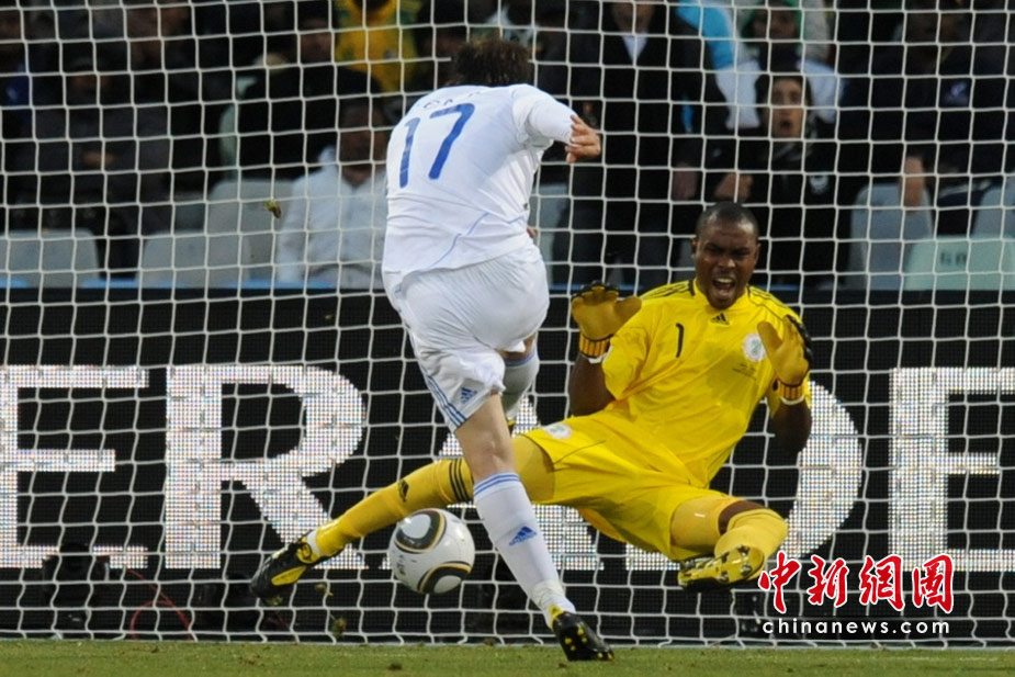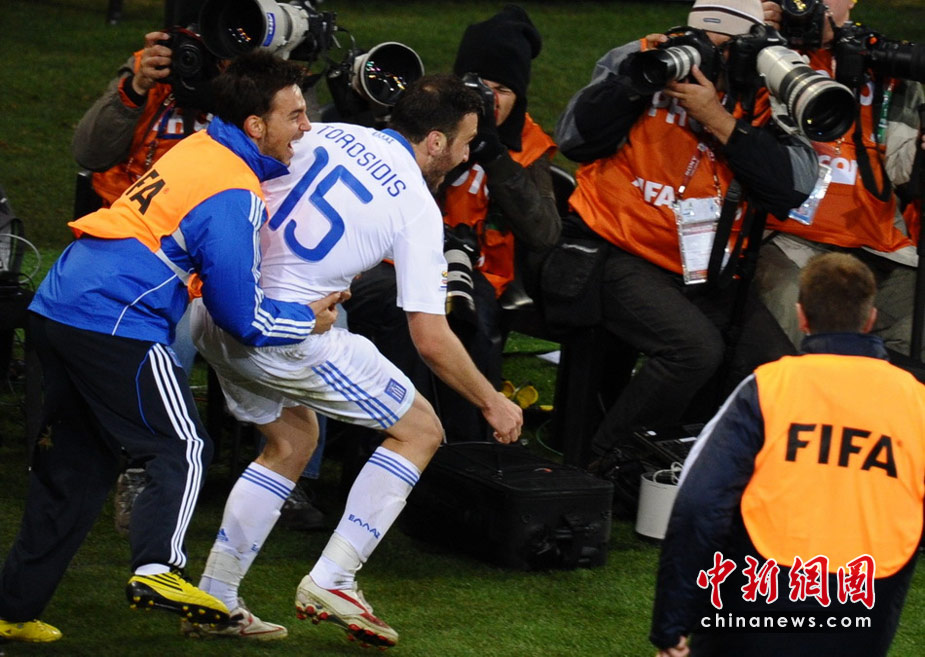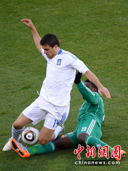 6月17日,南非世界杯B組第二輪比賽打響,由歐洲勁旅希臘在布隆方丹的自由洲球場迎戰(zhàn)非洲雄鷹尼日利亞。上班時尼日利亞任意球率先破門,但此后被紅牌罰下一人,希臘隊隨即抓住機會,在上下半場各入一球,以2-1逆轉(zhuǎn)擊敗尼日利亞隊。