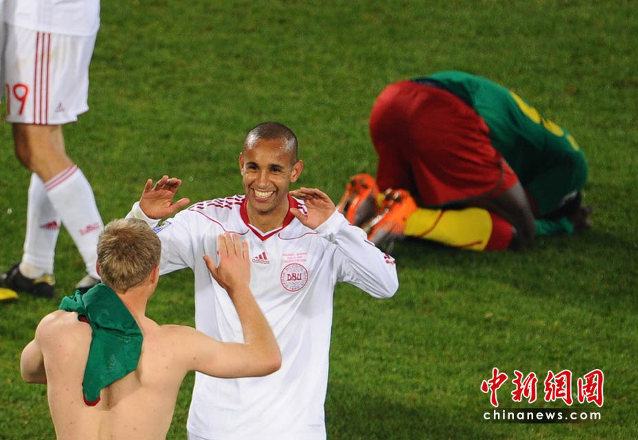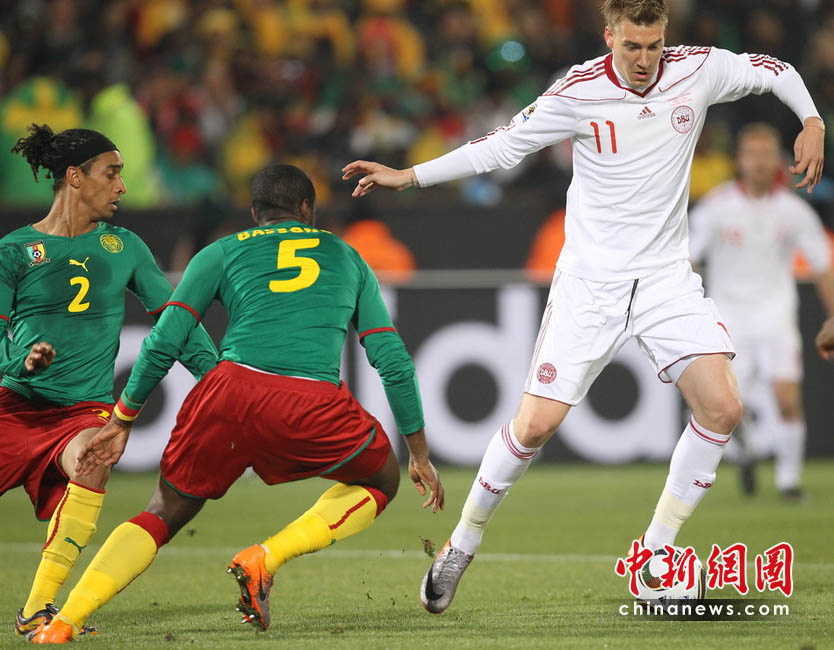北京時間20日凌晨,世界杯足球賽E組結(jié)束了第二輪的一場比賽,在首輪失利的丹麥隊和喀麥隆狹路相逢。經(jīng)過90分鐘的惡戰(zhàn),丹麥隊后來居上,以2比1逆轉(zhuǎn)擊敗喀麥隆隊?溌£犚呀(jīng)晉級無望,提前被淘汰出局。