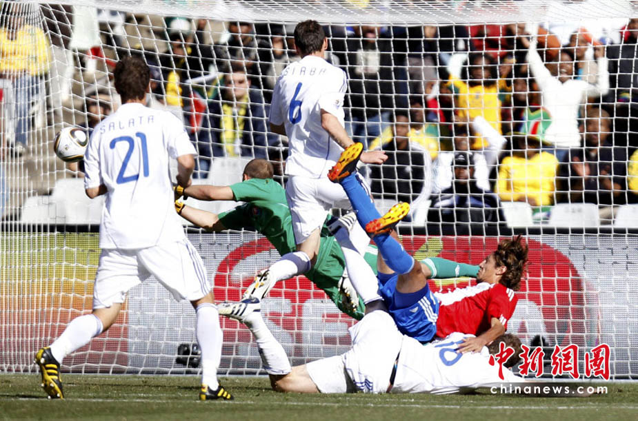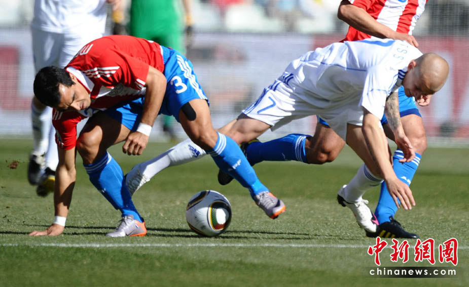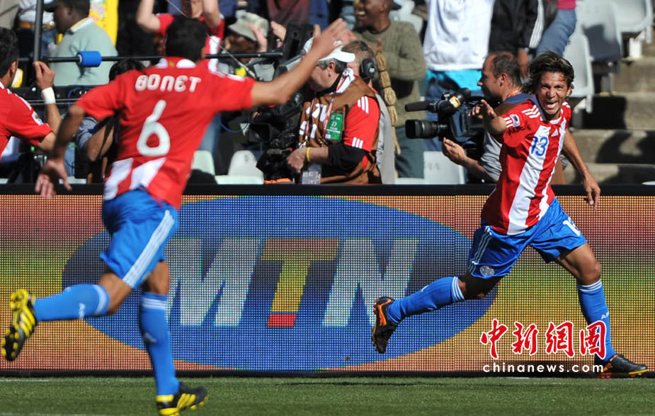 6月20日,南非世界杯F組第二輪巴拉圭同斯洛伐克隊(duì)的遭遇戰(zhàn),巴拉圭隊(duì)?wèi){借上下半場(chǎng)各一粒入球,2比0力克對(duì)手,兩戰(zhàn)一勝一平占據(jù)了小組出線的有利位置。