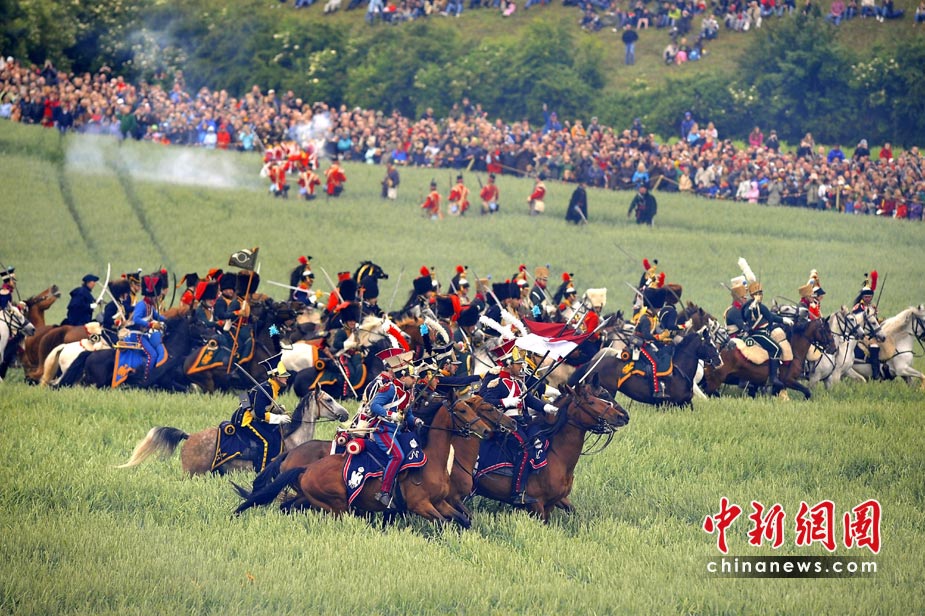 6月20日,在比利時首都布魯塞爾以南20公里的滑鐵盧,大約3000名來自多個國家的歷史愛好者身著古軍裝,在滑鐵盧安營扎寨,重現(xiàn)著名的滑鐵盧戰(zhàn)役。以此紀(jì)念滑鐵盧戰(zhàn)役195周年。