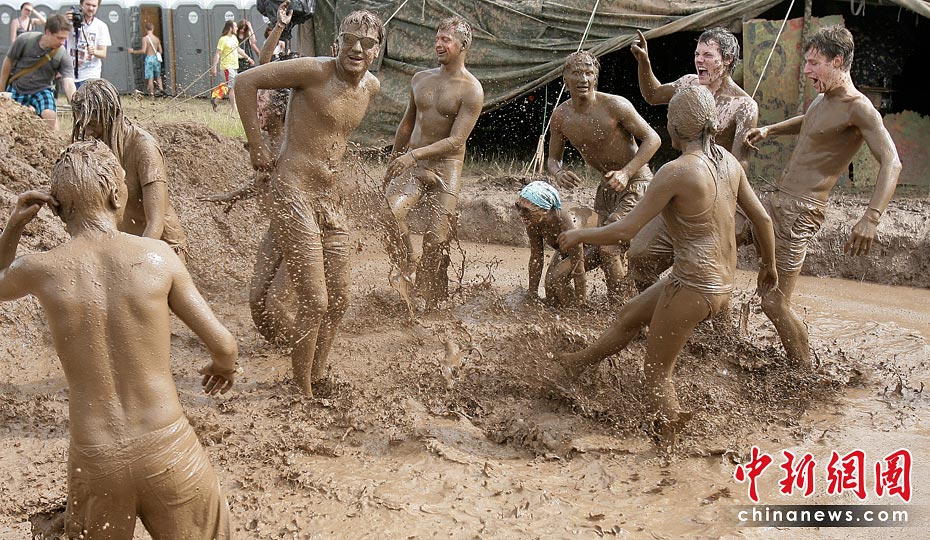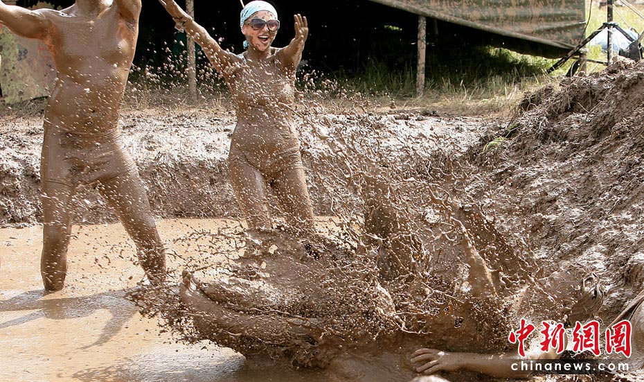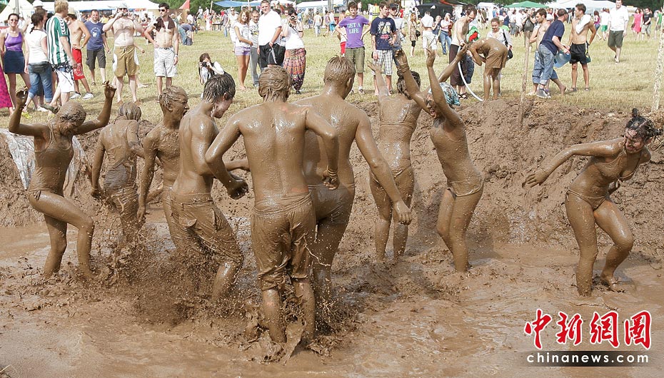 6月26日,在距離立陶宛維爾紐斯約90公里的一座村莊,參加第四屆國際音樂節(jié)的人們在泥漿中盡情歡樂。當(dāng)天,第四屆維爾紐斯國際音樂節(jié)在該地上演,這是波羅的海沿岸國家最大的音樂藝術(shù)節(jié)日,吸引眾多民眾前來狂歡。