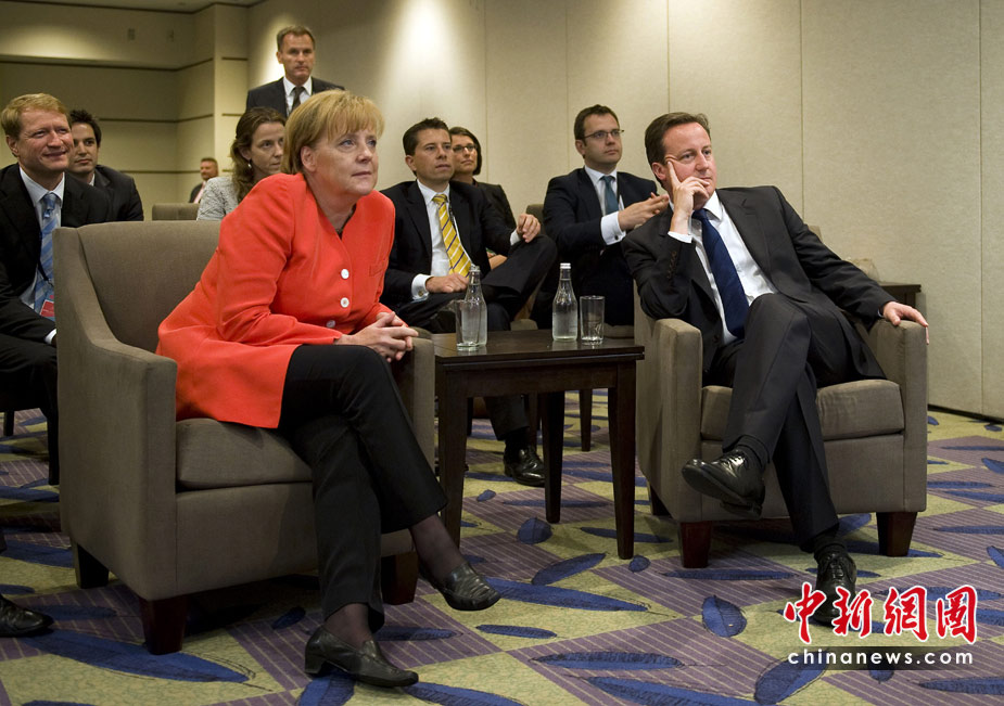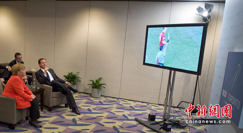 6月27日,正在加拿大參加G20領(lǐng)導(dǎo)人峰會的德國總理默克爾和英國首相卡梅倫,一同觀看了世界杯英格蘭與德國隊(duì)的比賽。
