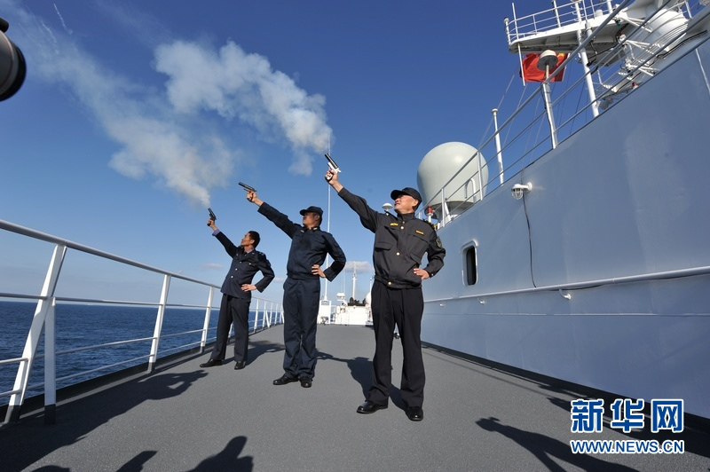 海軍、海監(jiān)、漁政部門(mén)人員共同發(fā)射信號(hào)彈!皷|海協(xié)作—2012演習(xí)”軍地海上聯(lián)合維權(quán)演習(xí)正式開(kāi)始。虞起正 攝