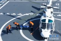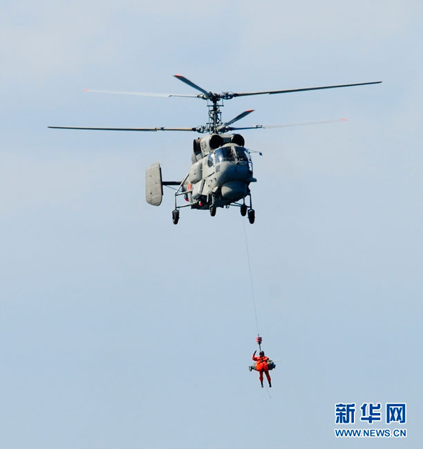 搜救直升機(jī)營救“落水人員”。孫利 攝 圖片來源:新華網(wǎng)