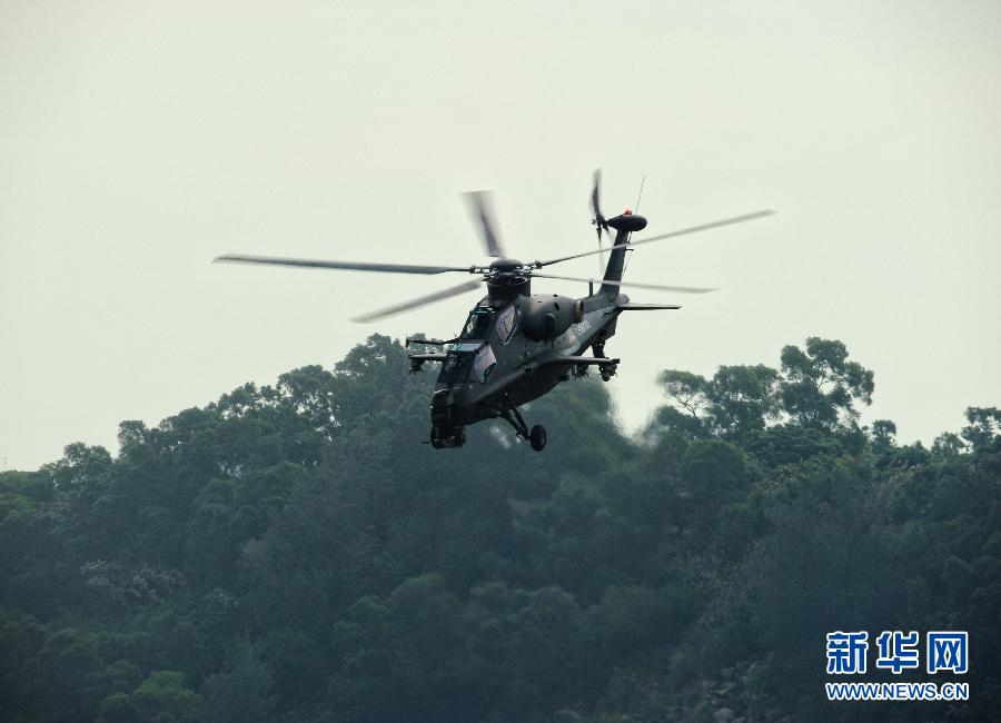 2012年11月11日,國產(chǎn)武直10武裝直升機(jī)在珠海三灶機(jī)場進(jìn)行飛行訓(xùn)練。當(dāng)日,我國自主研制生產(chǎn)的武直10武裝直升機(jī)在珠海三灶機(jī)場進(jìn)行了約20分鐘的適應(yīng)性飛行訓(xùn)練,做出倒飛、萊維斯曼機(jī)動、高速大角度俯沖、低空小半徑盤旋等動作,展現(xiàn)出其優(yōu)異性能,引來航展現(xiàn)場觀眾頻頻喝彩。楊光 攝 圖片來源:新華網(wǎng)