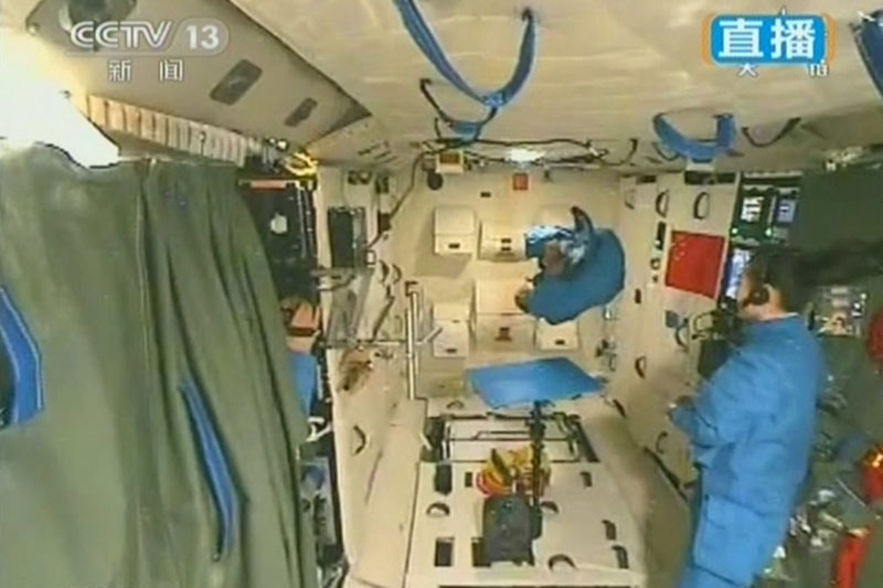 6月20日上午10時許,神舟十號航天員進行中國首次太空授課,女航天員王亞平擔(dān)任主講,成為中國首位“太空教師”。(視頻截圖)