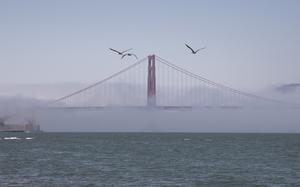 舊金山現(xiàn)“霧鎖金門(mén)大橋”美景