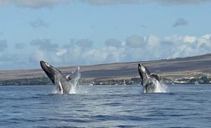 兩頭鯨魚同時躍出水面