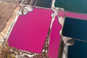 千年鹽湖變身“玫瑰紅”