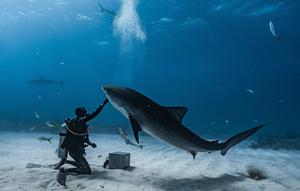 男子水下?lián)崦忯~(yú)