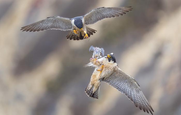 游隼飛行中傳遞食物