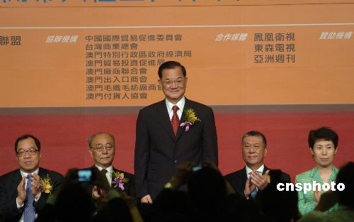 十月十七日,中國國民黨榮譽主席連戰(zhàn)出席在澳門旅游塔舉行的第四屆世界華商高峰會并以“以堅固核心充實緊密網(wǎng)路”為主題進行演講。中新社發(fā) 史利 攝