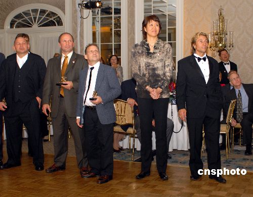 2007年新澤西冠軍之夜于當(dāng)?shù)貢r(shí)間10月20日在美國新澤西州希爾頓飯店舉行。大會(huì)會(huì)場放映著2008年北京奧運(yùn)會(huì)的宣傳片,場外北京奧運(yùn)會(huì)的宣傳畫到處可見,大會(huì)紀(jì)念冊的封面上印著北京奧運(yùn)會(huì)紀(jì)念章。中國著名女排運(yùn)動(dòng)員、現(xiàn)任美國女排主教練的郎平作為大會(huì)特邀嘉賓出席了當(dāng)晚的活動(dòng),中新社發(fā) 龔文謨 攝