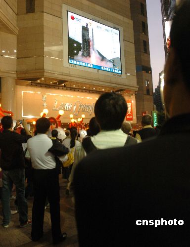 10月24日,中國首枚探月衛(wèi)星“嫦娥一號(hào)”于傍晚6時(shí)05分在四川西昌衛(wèi)星發(fā)射中心發(fā)射場(chǎng)順利升空。圖為香港市民在時(shí)代廣場(chǎng)駐足觀看電視直播“嫦娥一號(hào)”發(fā)射升空一刻。中新社發(fā) 鄧慶樂 攝