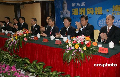 第三屆湄洲媽祖·海峽論壇10月30日在媽祖故鄉(xiāng)福建莆田開幕。全國政協(xié)副主席張克輝發(fā)來賀信,中國僑聯(lián)主席林兆樞出席開幕式。來自中國、菲律賓、日本、澳大利亞、新西蘭、馬來西亞、印尼、新加坡、巴拉圭、南非、荷蘭、臺灣、香港等13個國家和地區(qū)的一百多名僑領(lǐng)以及媽祖文化專家、學(xué)者,將圍繞“媽祖文化與華人華僑”主題進行為期兩天的研討交流。出席開幕式的還有福建省政協(xié)副主席、統(tǒng)戰(zhàn)部長張燮飛等。中新社發(fā) 張勤 攝