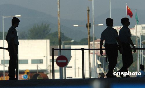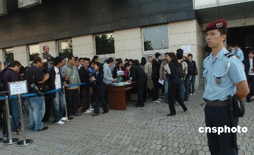 十一月五日,澳門前運(yùn)輸工務(wù)司司長歐文龍涉嫌嚴(yán)重受賄案在終審法院開審,法院外三步一崗,五步一哨,戒備森嚴(yán)。被控七十六項(xiàng)罪名的歐文龍首度出庭應(yīng)訊,預(yù)計(jì)聆訊超過一個月。這是澳門回歸八年來首宗直接由終審法院主理的刑事案,被喻為“世紀(jì)巨貪案”。中新社發(fā) 史利 攝