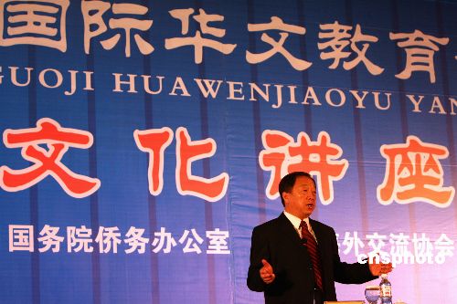 11月5日晚,在青島舉行的第五屆國(guó)際華文教育研討會(huì)文化講座上,南開(kāi)大學(xué)教授孫立群做題為“中華文化的源與流”演講。中新社發(fā) 張勤 攝