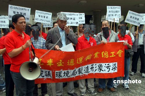 11月7日,香港20多名汽車交通運輸業(yè)總工會代表,由中環(huán)遮打花園前往政府總部,不滿當(dāng)局就停車熄匙的咨詢文件,用了很多負(fù)面手法,過份渲染停車沒有熄匙所帶來的影響。中新社發(fā) 譚達明 攝