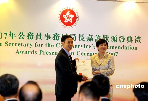 十一月十五日,香港舉行公務(wù)員事務(wù)局局長(zhǎng)嘉許狀頒發(fā)典禮,為來(lái)自三十八個(gè)局及部門(mén)的七十五名優(yōu)秀公務(wù)員頒發(fā)嘉許狀,表?yè)P(yáng)他們的杰出表現(xiàn)。中新社發(fā) 王麗南 攝