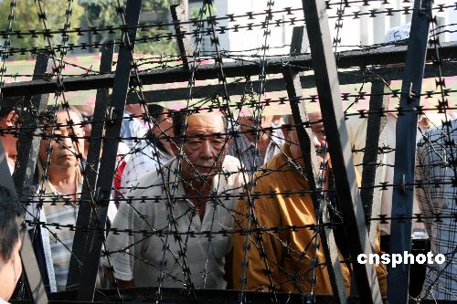 11月16日,高雄市長(zhǎng)選舉官司在當(dāng)?shù)囟䦟彾ㄗ棥4碇袊?guó)國(guó)民黨的候選人黃俊英在選舉無效和當(dāng)選無效兩項(xiàng)訴訟中均遭判敗訴。民進(jìn)黨的陳菊在去年12月9日勝出擔(dān)任市長(zhǎng)后,今次獲承辦法官支持繼續(xù)擔(dān)任市長(zhǎng)。今年6月15日,該官司一審曾判,選舉有效,但陳菊當(dāng)選無效。圖為判決前,有陳菊的支持者在拒馬后向內(nèi)張望,表達(dá)關(guān)注。中新社發(fā) 黃少華 攝