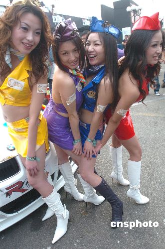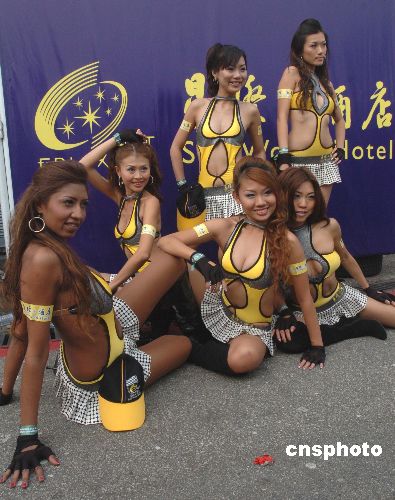 十一月十八日,幾位美女在第五十四屆澳門格蘭披治大賽車上亮相。性感的服飾。苗條的身材,動人的眼神,爭艷斗麗,各領風騷。中新社發(fā) 史利 攝