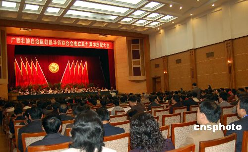 十一月二十八日,廣西壯族自治區(qū)歸國華僑聯(lián)合會成立五十周年慶祝大會在南寧舉行。東盟各國、美國和港澳等近二十個國家和地區(qū)的華人華僑代表和廣西各界人士共四百人出席大會,中國僑聯(lián)副主席李祖沛在會上講話,中共廣西區(qū)委員會書記劉奇葆發(fā)信祝賀。中新社發(fā) 劉萬強(qiáng) 攝