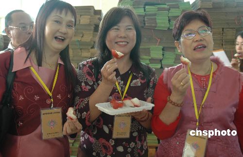十一月二十九日,臺(tái)南縣十二家媒體記者參觀海口金德豐臺(tái)資農(nóng)場(chǎng)時(shí),品嘗該農(nóng)場(chǎng)出產(chǎn)的蓮霧,稱贊其品質(zhì)與臺(tái)灣的一樣鮮甜。中新社發(fā) 王辛莉 攝