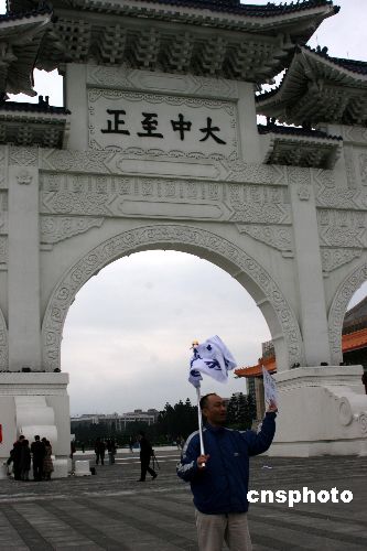 臺北“中正紀(jì)念堂”是否改名引發(fā)的爭議,延伸至堂前廣場上的“大中至正”牌匾。十二月四日下午,臺北市民自發(fā)前往“中正紀(jì)念堂”,抗議臺灣當(dāng)局有關(guān)部門做出將要拆除“大中至正”牌匾的決定。中新社發(fā) 陳國華 攝