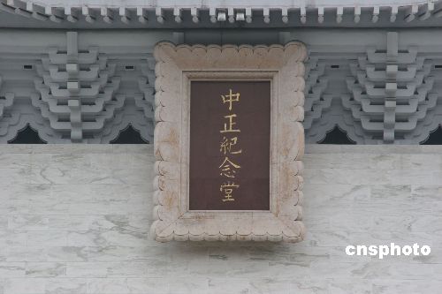 12月6日,臺灣當局已將臺北市標志性建筑“中正紀念堂”的牌匾拆除,將換上“民主紀念館”的新牌匾。圖為拆除前的“中正紀念堂”的牌匾。中新社發(fā) 耿軍 攝