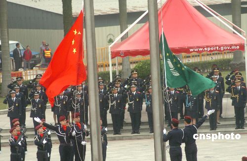 十二月二十日清晨,澳門蓮花廣場舉行隆重的升旗儀式,慶祝澳門特別行政區(qū)成立八周年。澳門特首何厚鏵、中央人民政府駐澳門聯(lián)絡辦公室主任白志健及各界人士出席升旗儀式。中新社發(fā) 史利 攝