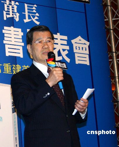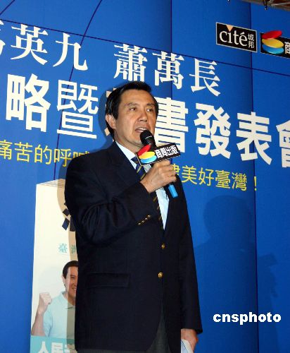 二十日,國民黨二00八參選人馬英九及其搭檔蕭萬長聯(lián)合出版的新書在臺北正式發(fā)表,該書以兩人對談的方式,詳述他們“拼經(jīng)濟,救民生”治理臺灣的具體政策。中新社發(fā) 陳國華 攝