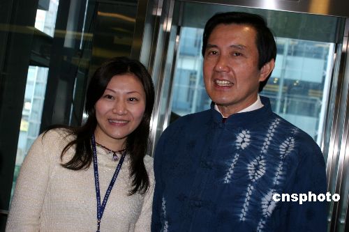前臺北市長馬英九特別費(fèi)案,將于二十八日二審宣判。馬英九重申,他對他的清白有信心,對法院的公正有期待。圖為十二月二十七日,馬英九在出席一個(gè)公開活動后,與臺北縣一名女員工合影留念。中新社發(fā) 董會峰 攝
