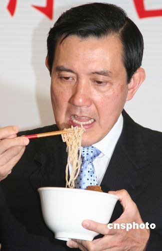 圖:馬英九吃豬腳面線 象征去除厄運(yùn)