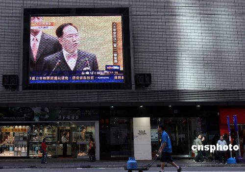 香港鬧市屏幕直播曾蔭權(quán)會(huì)見新聞界相關(guān)報(bào)道