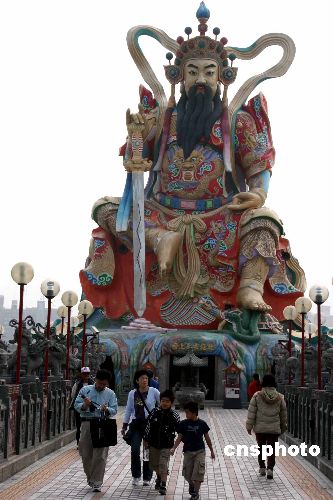 圖為元旦節(jié)前人氣頗旺的元帝廟,這里擁有東南亞最高水上神像——“北極玄天上帝”。