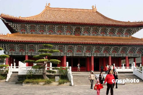 圖為元旦前夕,一群游客走出大成殿。