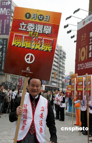 一月八日,臺北市政府民政局在臺北街頭組織宣導(dǎo)民眾踴躍投票活動,為即將到來的臺灣“立委”選舉造勢。中新社發(fā) 孫自法 攝