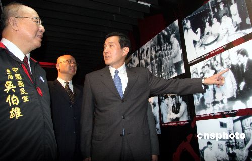 一月九日,為紀(jì)念蔣經(jīng)國先生逝世二十周年,由中國國民黨主辦的“臺(tái)灣路——蔣經(jīng)國的旅程”文物特展在臺(tái)北原國民黨中央黨部中正展覽廳開幕。中國國民黨主席吳伯雄、馬英九等出席特展開幕式并參觀展覽。中新社發(fā) 孫自法 攝
