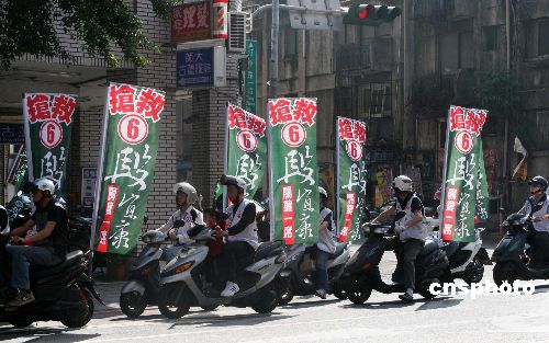 將于一月十二日進(jìn)行的臺灣第七屆“立委”選舉進(jìn)入最后沖刺階段,十一日,一候選人的摩托車隊在臺北市萬華區(qū)掃街拜票,大打“告急牌”。中新社發(fā) 陳立宇 攝