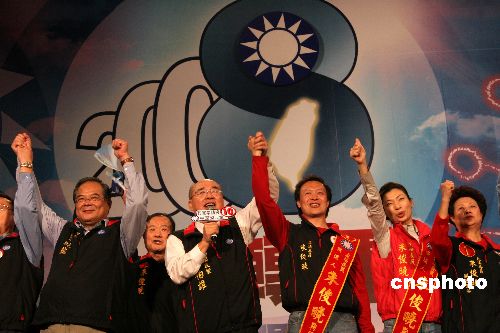 1月11日晚,中國國民黨在臺北縣三重市綜合運動場舉辦“2008臺灣轉(zhuǎn)運之夜”活動,為國民黨參加本屆“立委”選舉作最后沖刺。中新社發(fā) 孫自法 攝